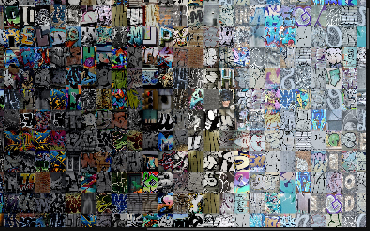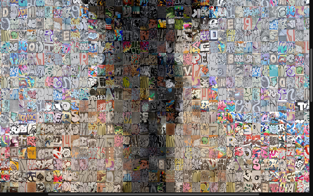 EMROD ONE presents the maturation of his work. To express his calligraphic obsession, he applies his talent, composing images following a mosaic technique, assembling thousands of photographs of the graffiti he has encountered.