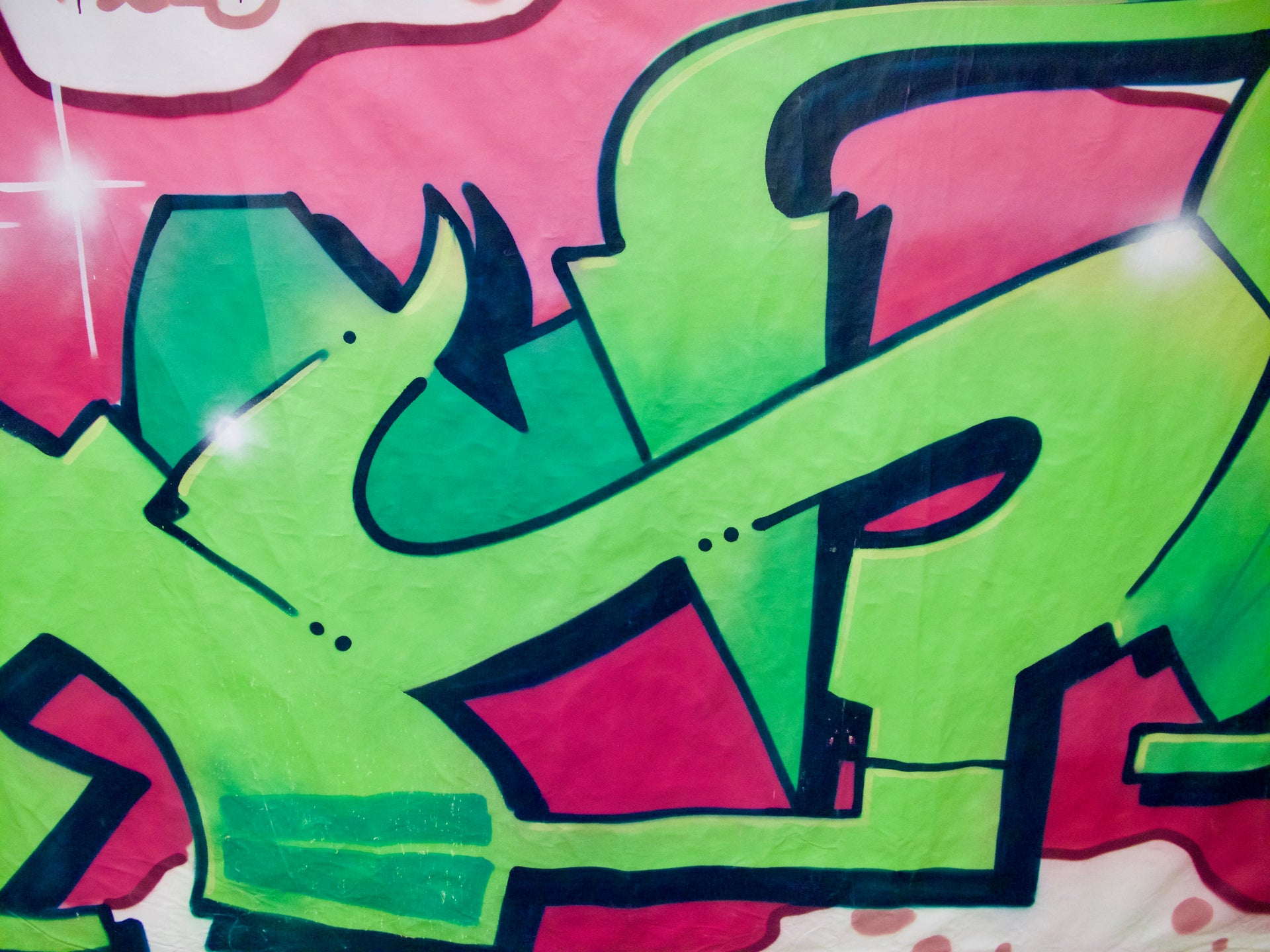 The contrast between the colours of the pink background and the filling of the green letters, with gradient effects, works perfectly.