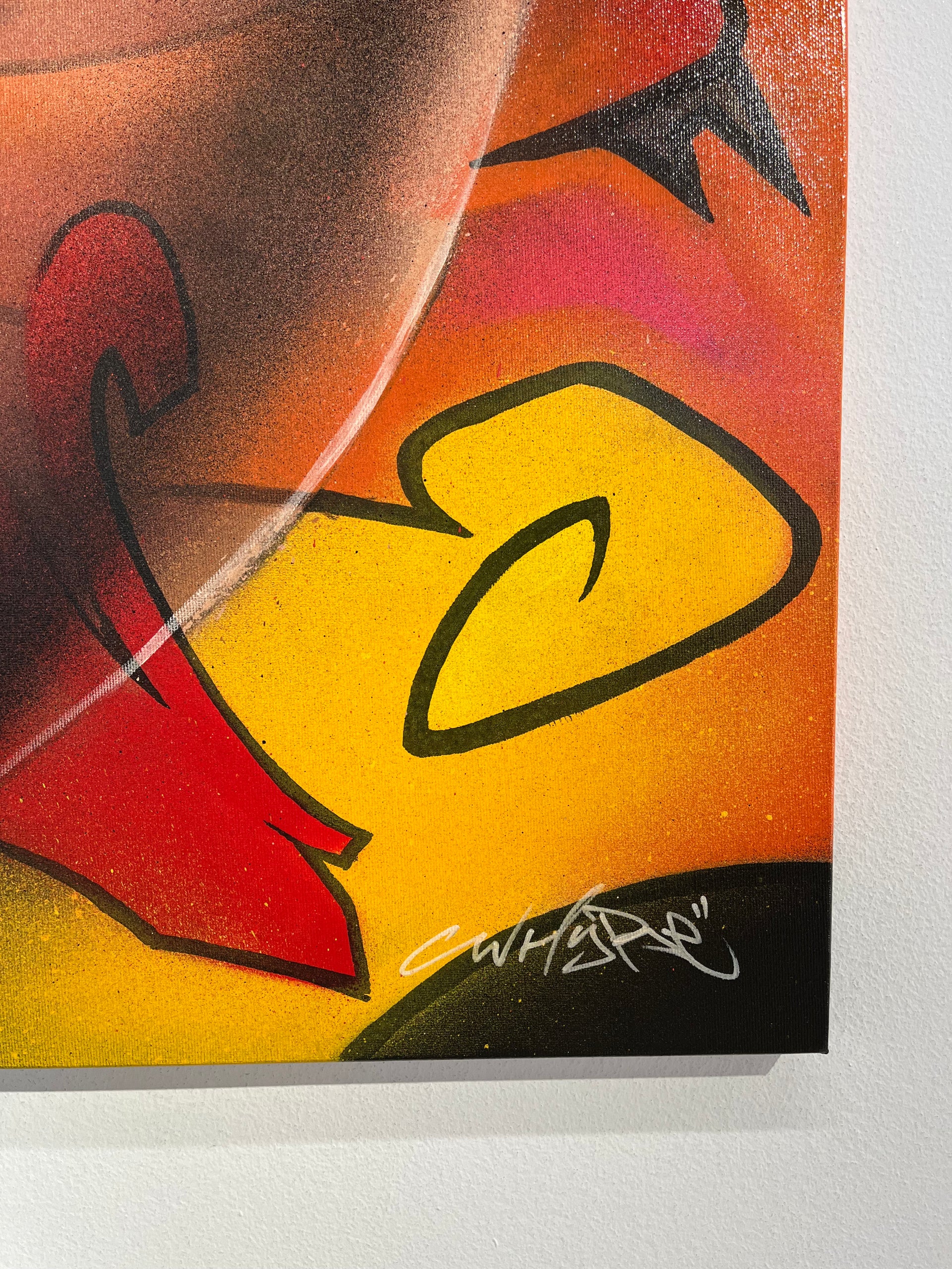 "Le lettrage, élément central du graffiti, est ici travaillé en transparence pour fusionner avec le portrait et lui donner une nouvelle dimension. Il ne recouvre pas mais se superpose, créant un lien entre le sujet et mon pseudonyme : « WHYRE ». Par cette technique, je cherche à montrer comment l'identité et l'art de la lettre peuvent s'entremêler, créant un impact visuel fort et dégageant une énergie urbaine propre au graffiti et à la culture Hip Hop."