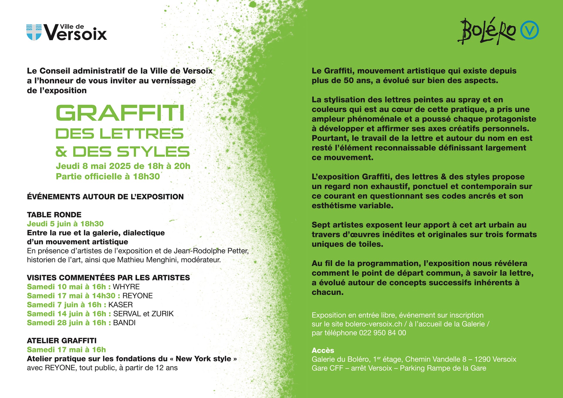 L’exposition Graffiti, des lettres et des styles vous présente un état des lieux, sans prétention d’exhaustivité, de ce que peut être le “Graff” en 2025. Sept artistes exposent leur apport personnel à ce mouvement au travers d’oeuvres inédites et originales sur trois formats uniques de toiles.