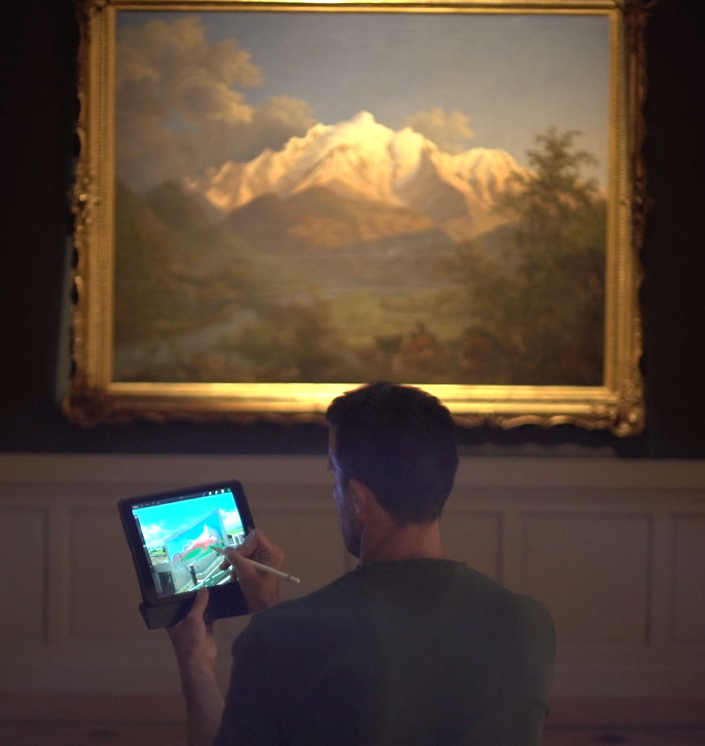Pour cette première, Serval choisit le tableau Le Mont-Blanc vu de Sallanches au coucher du soleil, peint par l’artiste genevois Pierre-Louis de la Rive, daté de 1802.